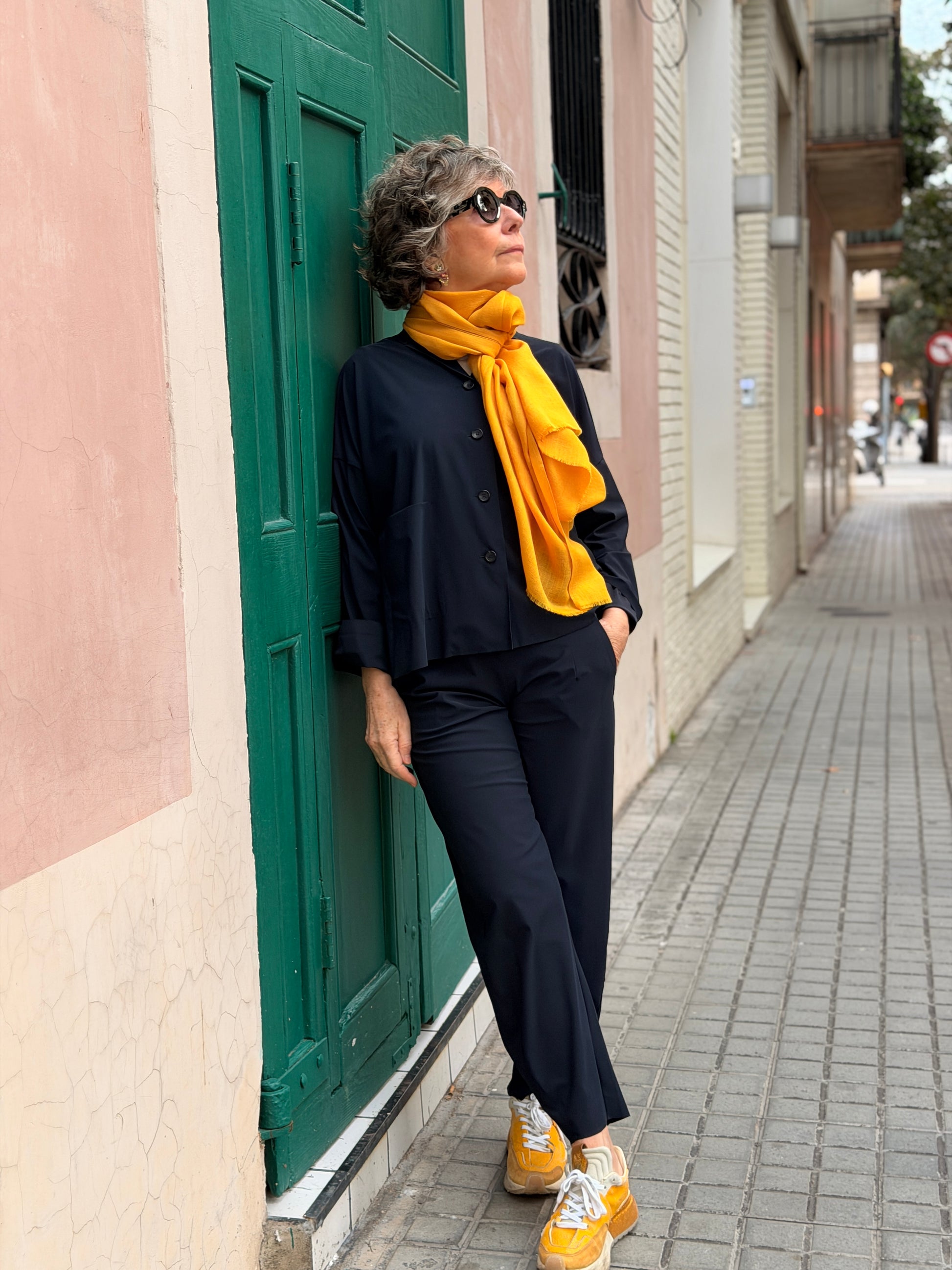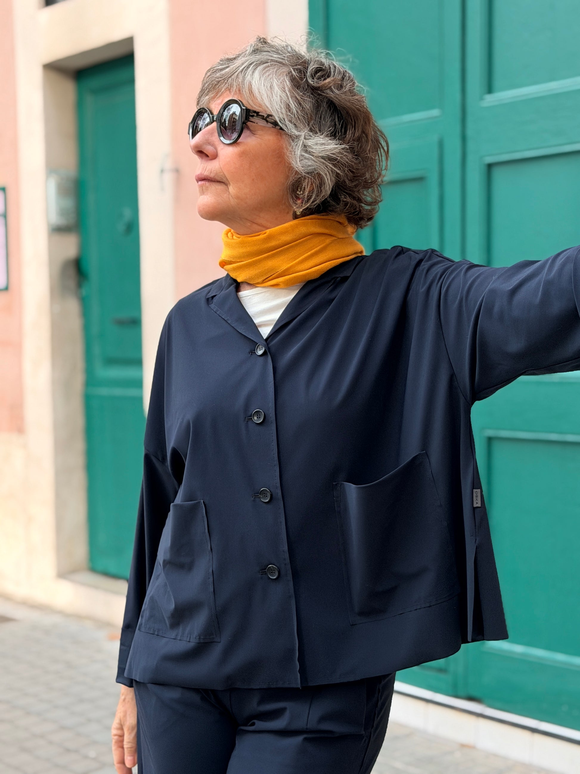 Highly elastic microfibre fabric designed for travel. The fabric is produced and dyed in Italy.